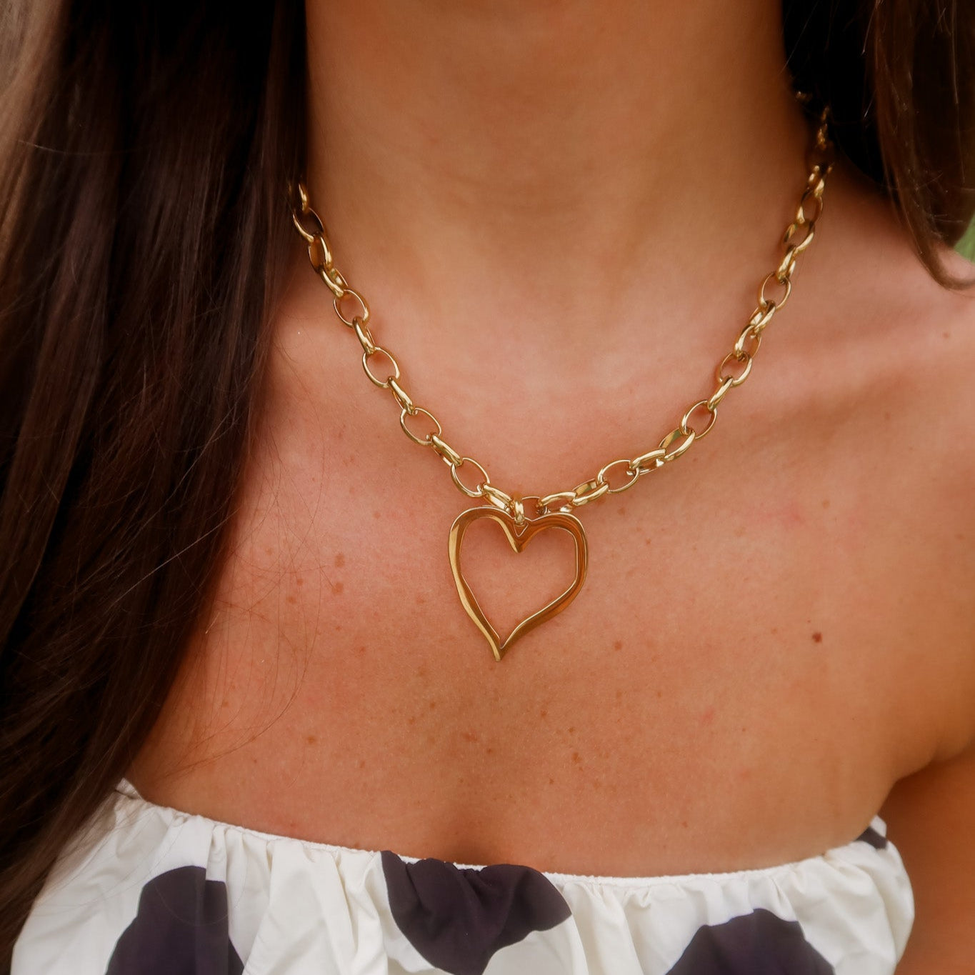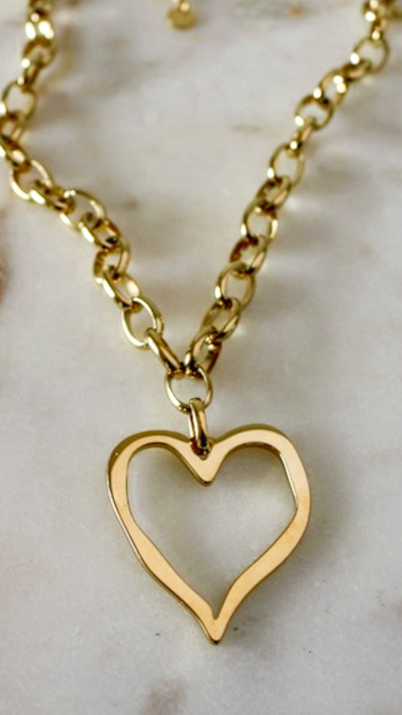 Featuring a sleek open-heart pendant, this necklace is crafted from stainless steel for a modern and durable finish. Suspended from a 17-inch chain with a 2-inch extender, this piece blends minimalism with elegance, making it perfect for everyday wear or layering with other favorites.